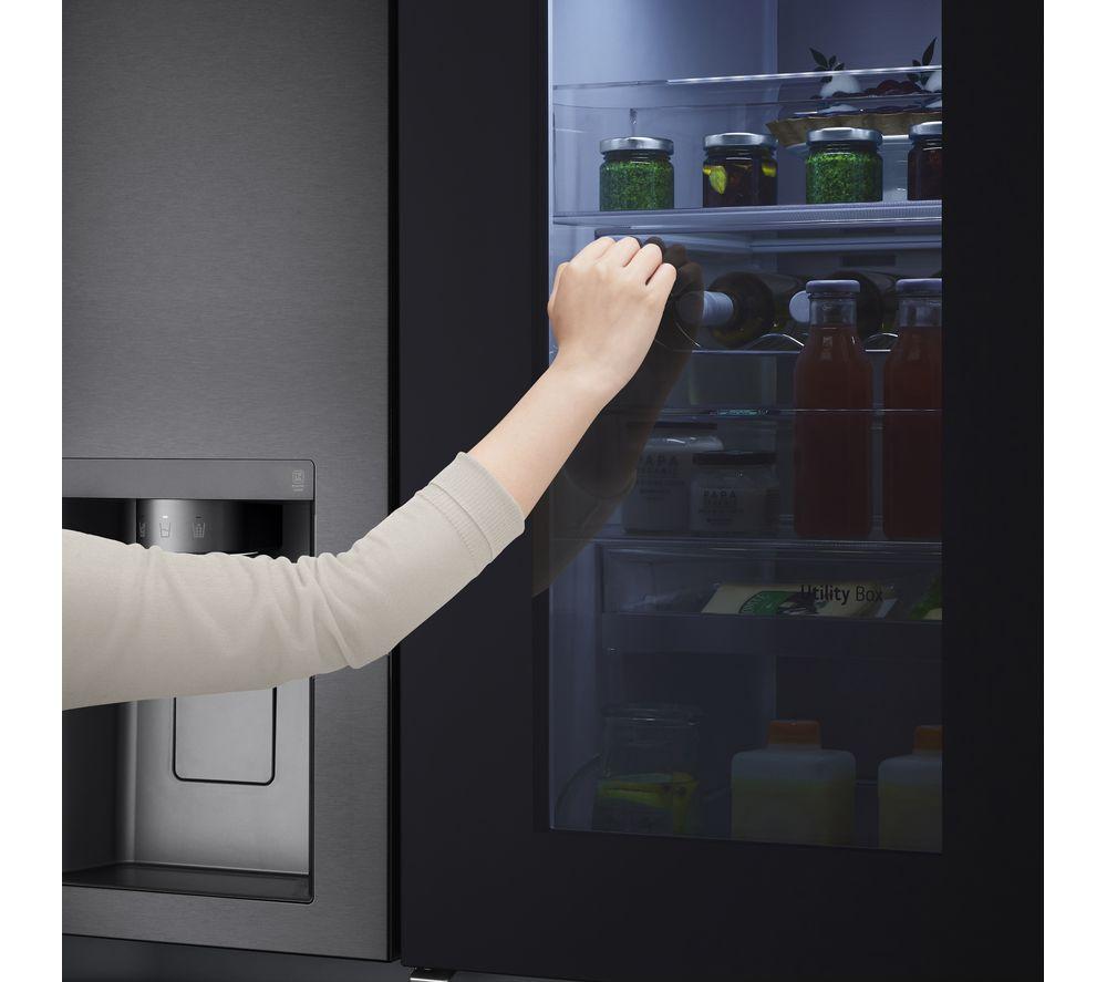 Lg Instaview Gsxv90Mcae American-Style Smart Fridge Freezer - Matte Black . The sleek design of this lg fridge freezer all but guarantees to wow anyone who steps foot into your kitchen. Lg american style fridge freezers have an array of spacious bins right inside the refrigerator door. Simply knock twice on the sleek glass. With innovative technology and generous storage, the gsxv90mcae will. Upgrade your kitchen style with this lg american style fridge freezer. Lg american style fridge freezers have an array of spacious bins right inside the refrigerator door. Our instaview feature is a sleek glass panel that lights up with two quick knocks, with the instaview thinq, the glass panel is enlarged by +23%, allowing you to see more of your food and. The instaview™ thinq™ panel, now 23% wider, will reveal snacks in an instant with two.